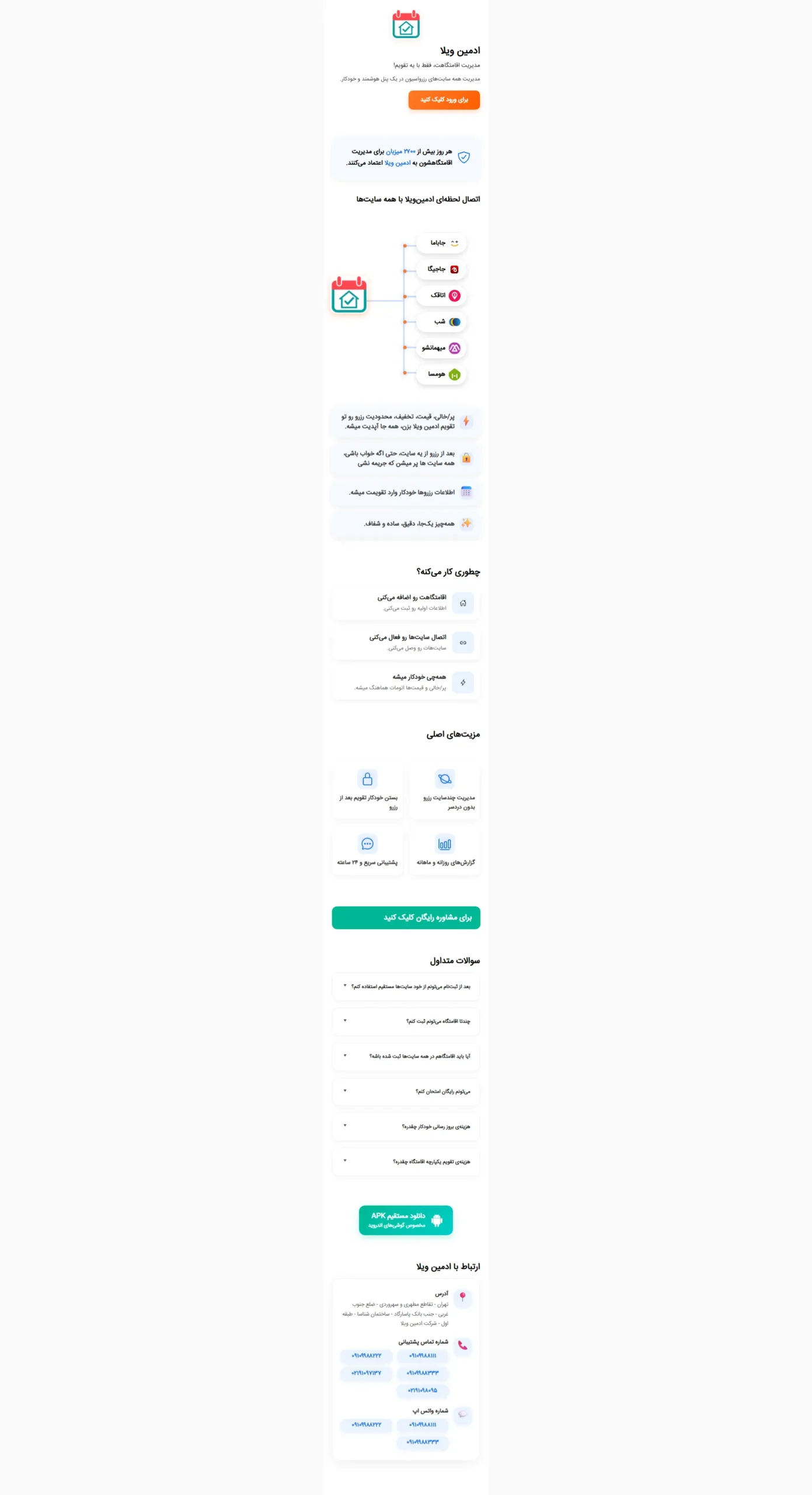 خدمات ادمین ویلا به کاربران این امکان را میدهد که وضعیت اقامتگاه خود را بهصورت همزمان در پنج سایت رزرواسیون آنلاین برتر کشور (جاباما، شب، اتاقک، هومسا و جاجیگا) بهروزرسانی کنند. این کار از طریق یک تقویم تخصصی انجام میشود که اطلاعات رزروها را ثبت و خروجی ماهانه و سالانه از میهمانان و بخش مالی ارائه میدهد.